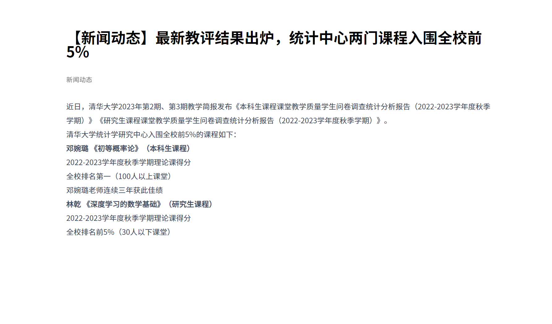 【新闻动态】最新教评结果出炉,统计中心两门课程入围全校前5%